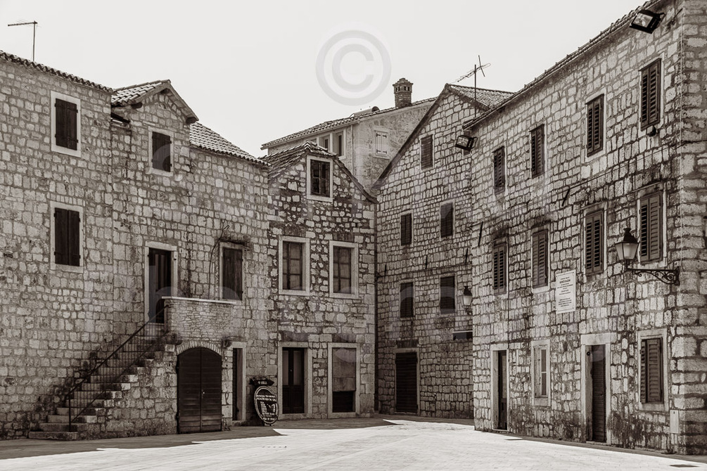 Typical Croatian stone houses in the town of Stari Grad on island Hvar - a place where old mediterranean architecture joins beautiful nature.
